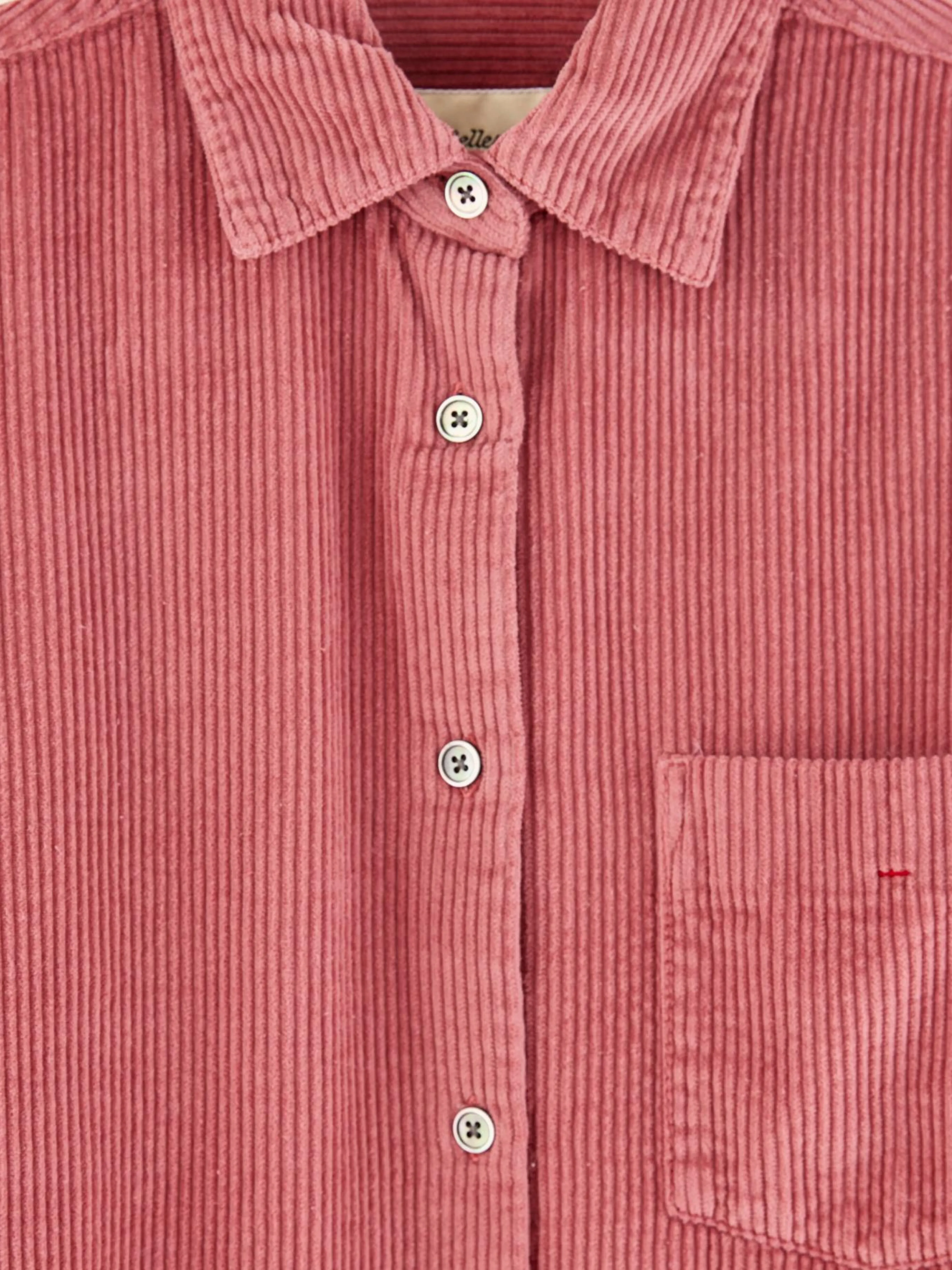 Korte jurk in hemdstijl, van rozekleurig katoenen corduroy.